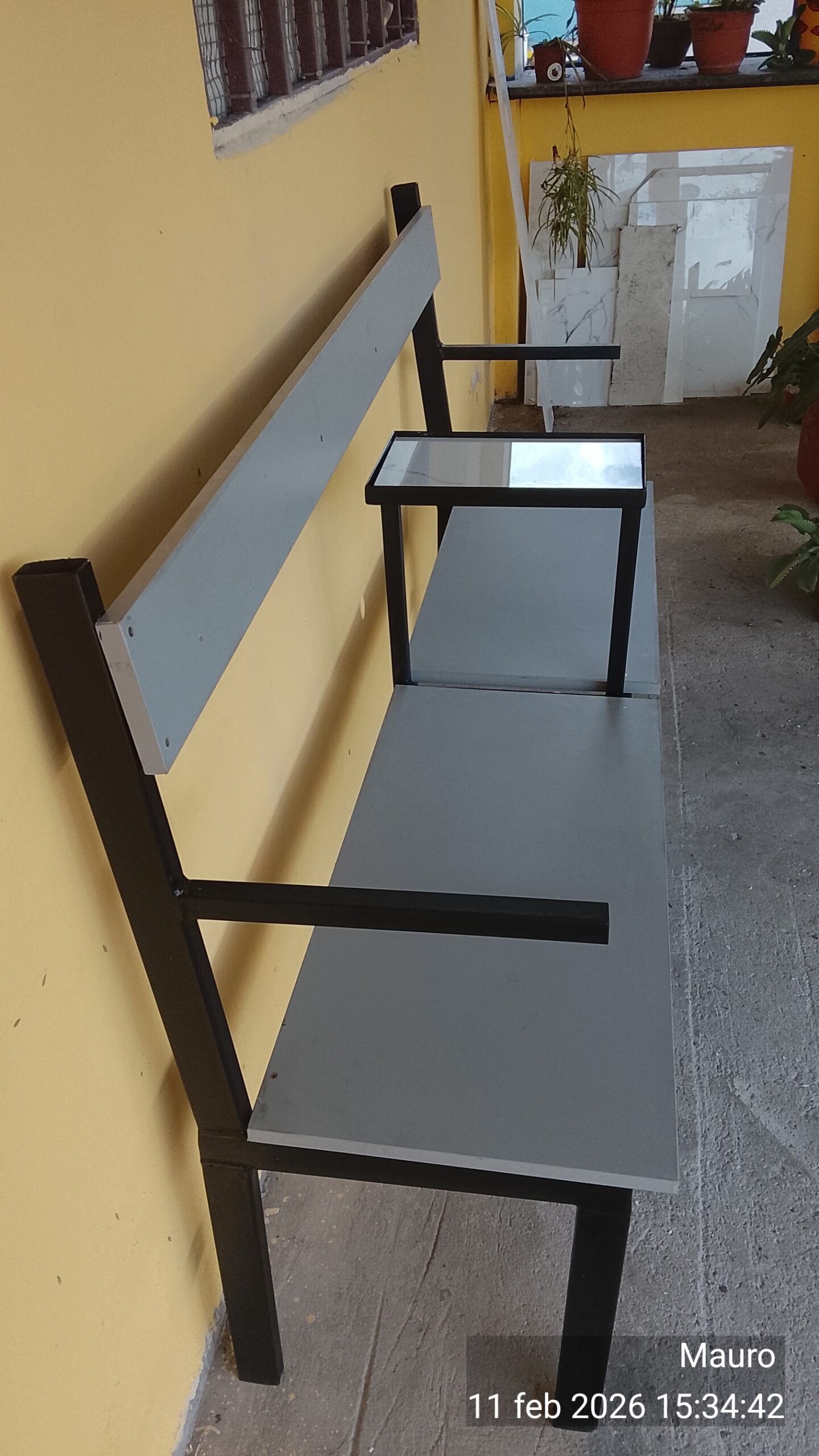 banca con suporte por botilia en granito